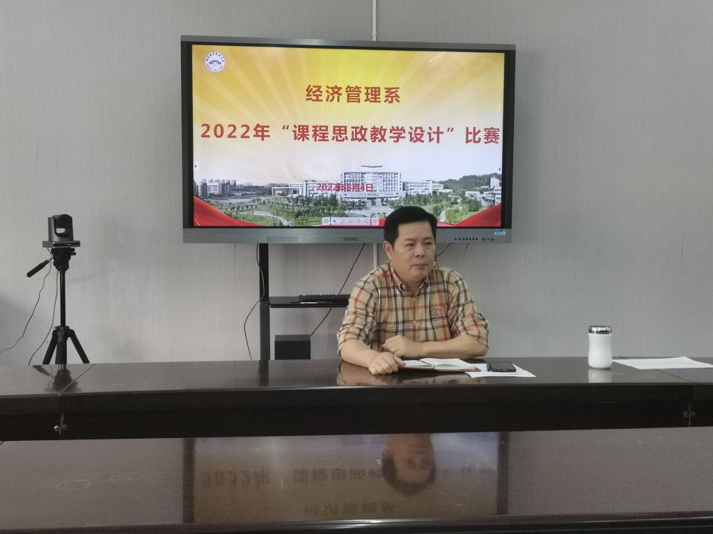 为深入贯彻落实中共中央办公厅、国务院办公厅《关于深化新时代公司思想政治理论课改革创新的若干意见》文件精神,根据《suncitygroup太阳集团关于举办第一届课程思政教学设计大赛的通知》(漳城院办综〔2022〕10号)文件要求,进一步挖掘专业课程中蕴含的思政元素,5月4日下午,系主任张少华在系会议室主持经济管理系课程思政教学设计比赛,我系6名教师参赛。