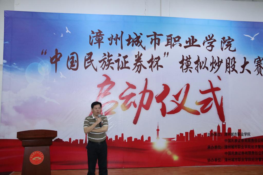 作为当代的一名老员工,认识经济,了解经济,掌握投资技巧日趋重要。然而,受到专业知识、实践经验和资金的限制,绝大多数老员工无法参与证券投资。为了培养老员工理论联系实践的能力,真正做到的学以致用,经济管理系联合中国民族证券漳州新华北路证券营业部共同举办“中国民族证券杯”模拟炒股大赛。中国民族证券漳州新华北路证券营业部人力资源部陈志斌总经理、林邵青副总经理、理财中心陈锰副总经理、经济管理系党总支书记吴李霞、系主任张少华,系教学科长林惠玲、系团总支书记陈林艺、互联网金融教研室主任叶淑惠老师等出席了启动仪式。