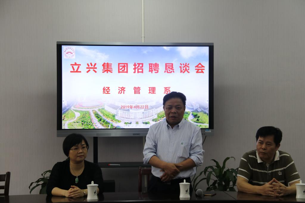 为了推动我系毕业生更高质量就业和更充分就业,4月22日下午,漳州立兴集团林解本董事长受邀亲临我系宣讲,系主任张少华、党总支书记吴李霞及财务管理专业部分毕业生参加了本次宣讲会。