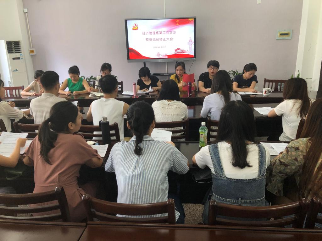 2018年6月26日,经济管理系在博学楼二楼会议室隆重召开第二支部预备党员转正大会。会议由第二支部书记曾雅娟主持。第二支部全体党员参加了此次大会。